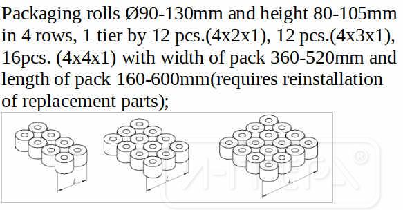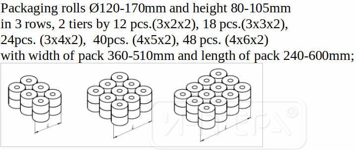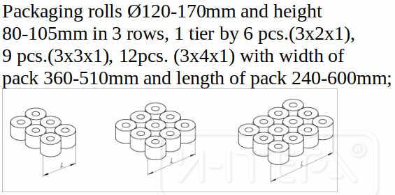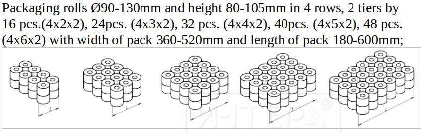 • up to 8 when packing 24pcs. (4х3х2) – 192 rolls/min