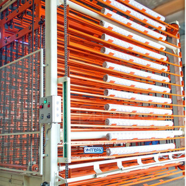 Machine for collection, temporary storage and drying of logs of toilet paper.
