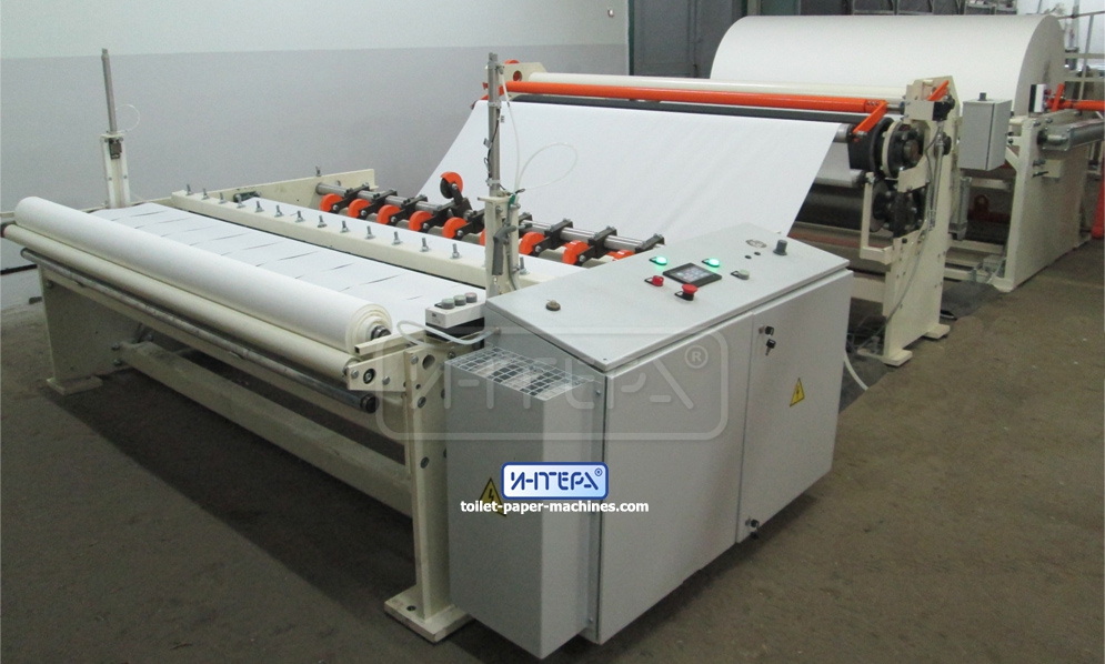 The slitting machine is designed for rewinding and longitudinal cutting into rolls tissue of paper and another material.
